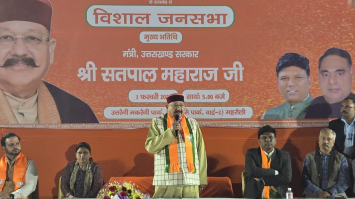 जनसभा को संबोधित करते मंत्री सतपाल महराज।