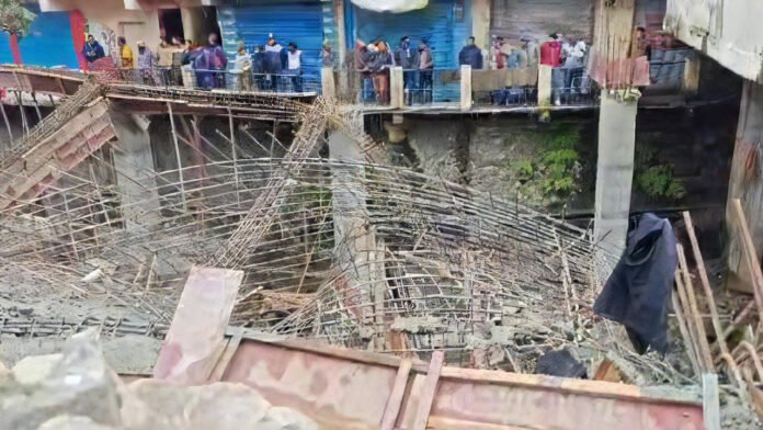 रुद्रप्रयाग। जिला मुख्यालय रुद्रप्रयाग के नए बस अड्डे पर पुनाड़ गदेरे के ऊपर पर सिंचाई विभाग की ओर से एक करोड़ पांच लाख की लागत से बनाई जा रही वाहन पार्किंग छत डालने के दौरान धराशाई हो गई। छत डालने का कार्य कर रहे दो मजदूर भी घायल हो गये, जिन्हें शीघ्र ही उपचार के लिये जिला चिकित्सालय भेजा गया।